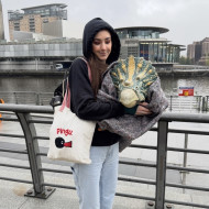 Bea the Triceratops after her debut on BBC Manchester (The Lowry, 2024))